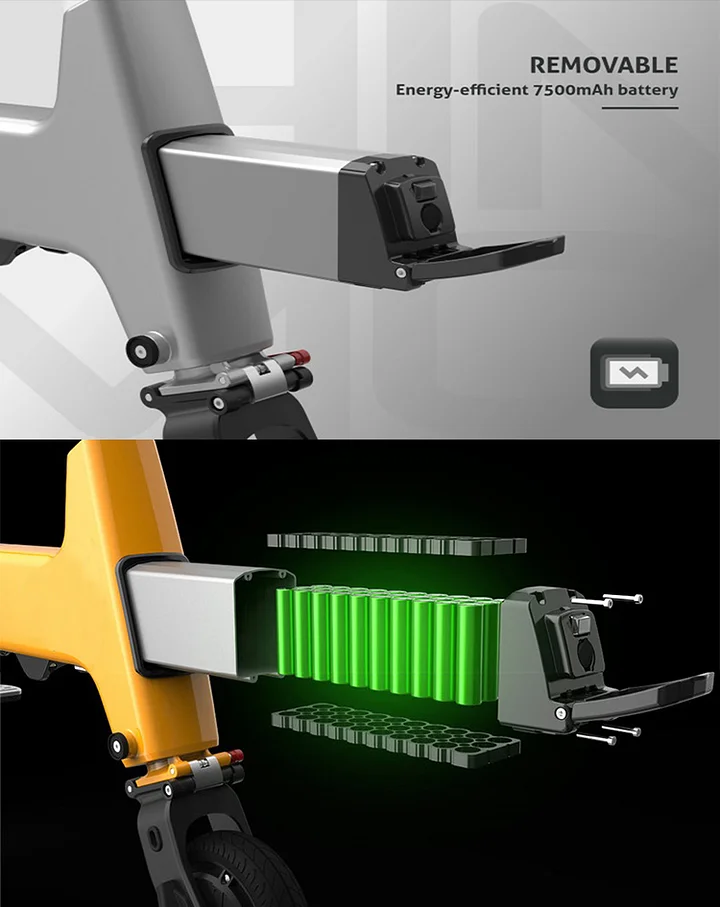 Batería de litio de tracción oculta, fácil de cargar y descargar. núcleo interior resistente.salida de energía, autonomía máxima de crucero de hasta 30 km.batería de larga duración + carcasa ignífuga, conducción segura. feliz viaje.
