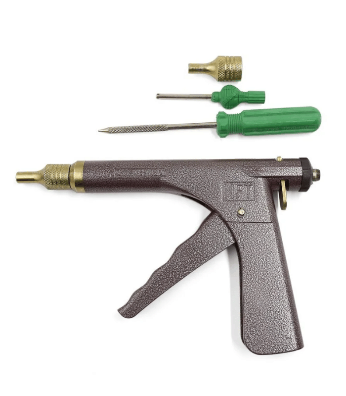 Incluye pistola de reparación, pistón de goma, punta de pistola de neumáticos y punzón para una reparación rápida de neumáticos.