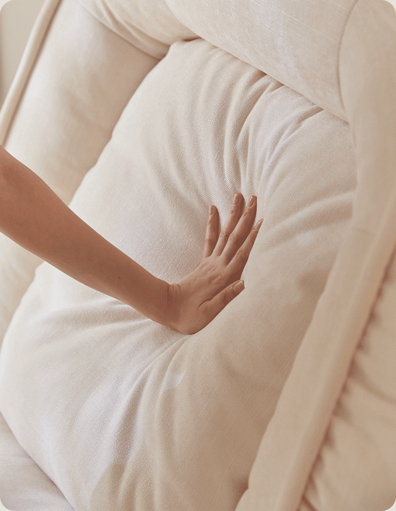 - Esté arropado: meta las manos y los pies dentro del borde de la almohada celestial.