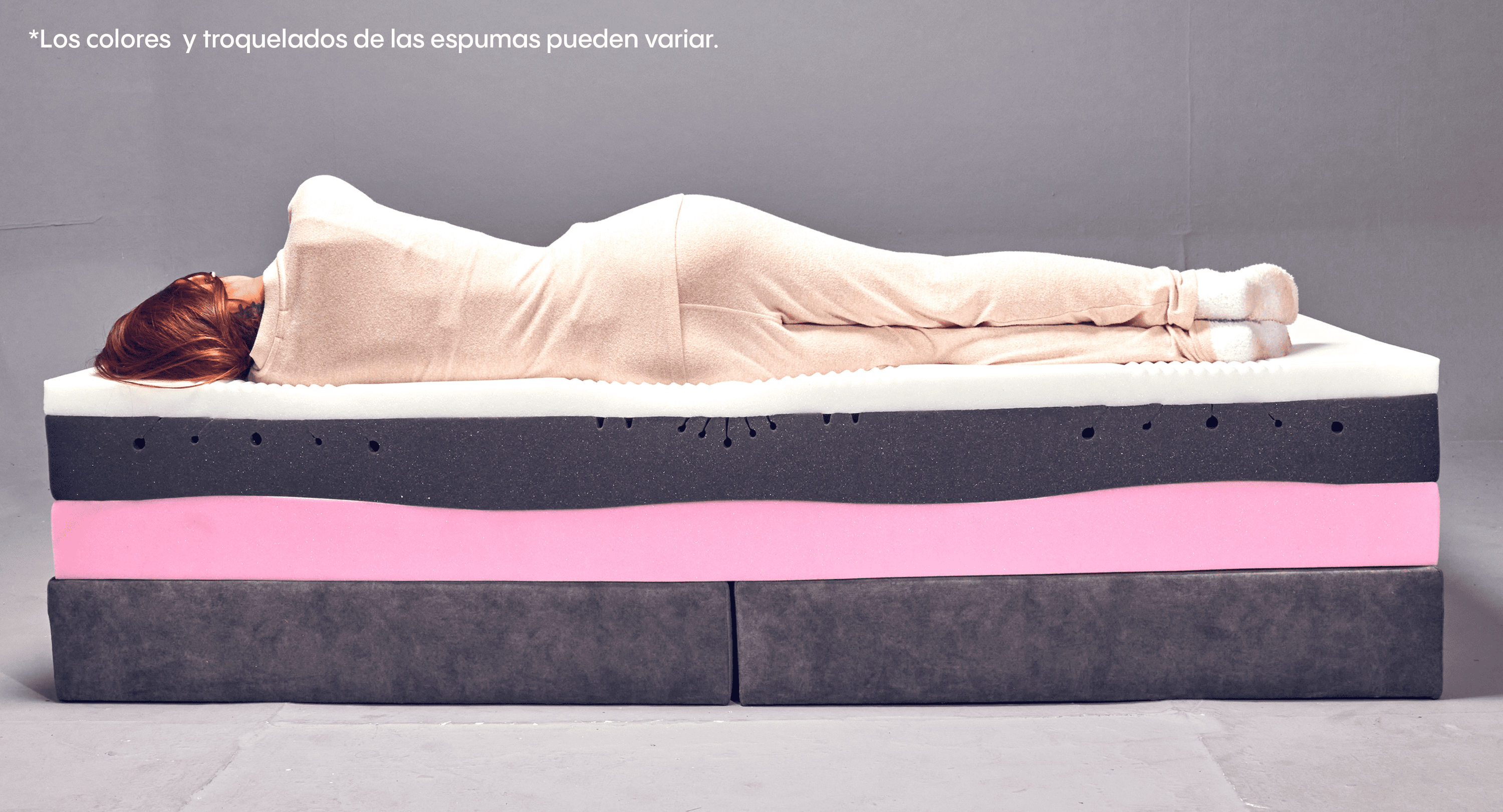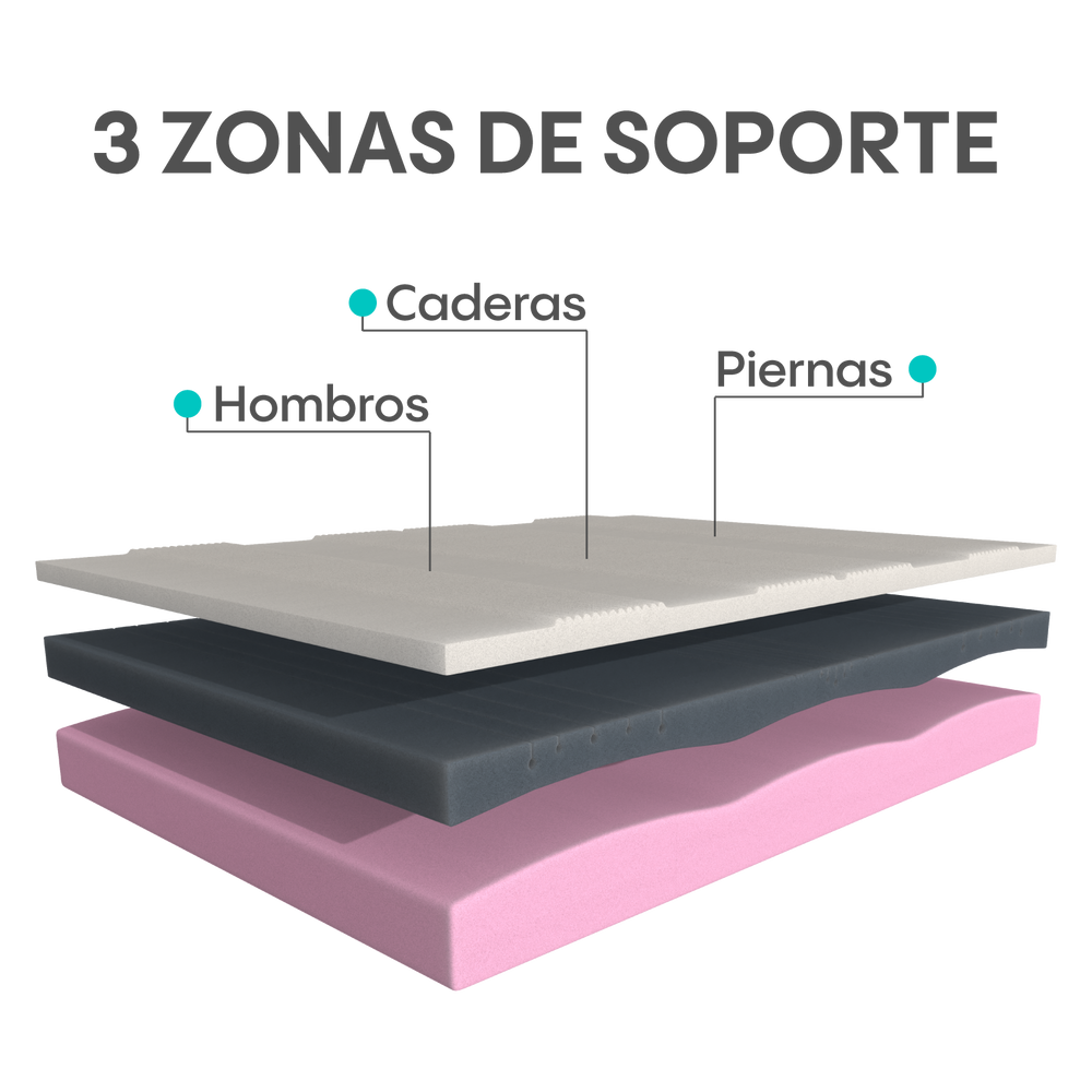 • 3 zonas de confort y soporte para asegurar la correcta alineación de columna, sin importar tu posición al dormir.